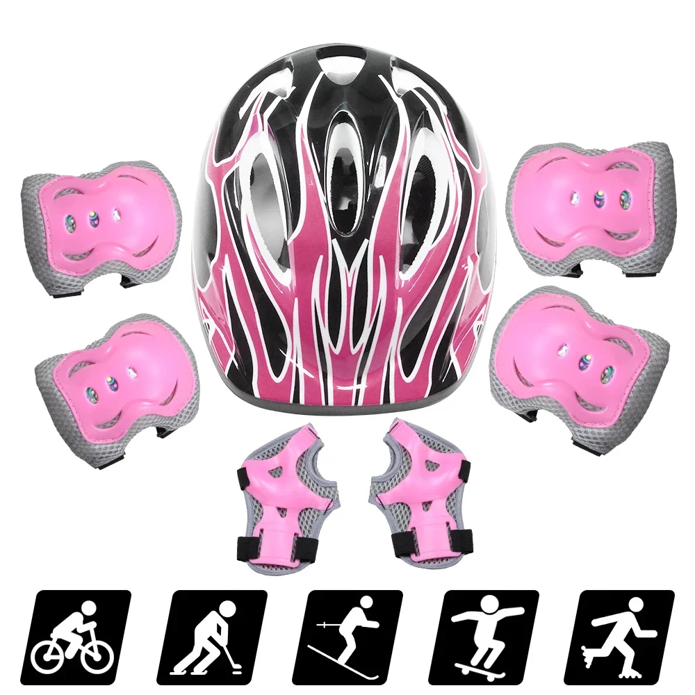 This set includes a helmet and protective pads for knees, elbows, and wrists, providing full coverage during outdoor activities. Made from lightweight and comfortable materials, it allows freedom of movement without any discomfort.
